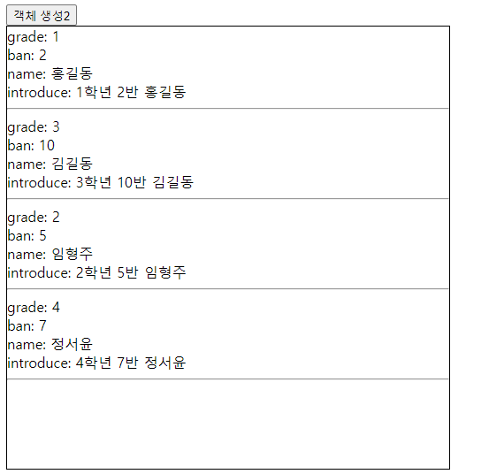 - 버튼 클릭시 생성되어 있는 객체 배열을 출력하고자 한다.