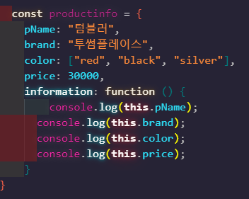 - 따라서, 객체 내의 변수(key)를 선택하기 위해서는 this를 통해 현재 객체 내 변수를 사용하겠다는 것을 명시해야 한다. 다만 동일 함수 내에 변수가 있다면 변수명 선택 시 그 변수를 사용한다