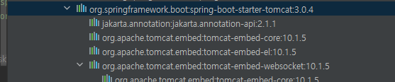 - 설치시 Spring boots starter web을 설치했기 때문에 이에 필요한 라이브러리를 자동적으로 가지고 온 것이다.