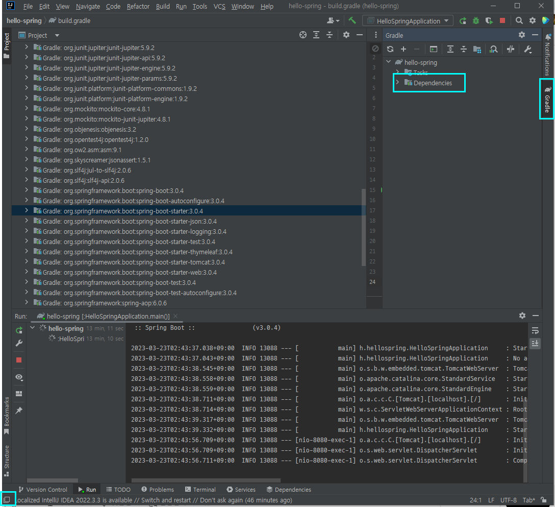 - 여기서 gradle을 클릭하면 의존관계를 볼 수 있다.