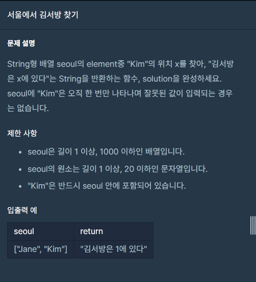 level 1. ์์ธ์์ ๊น์๋ฐฉ ์ฐพ๊ธฐ java