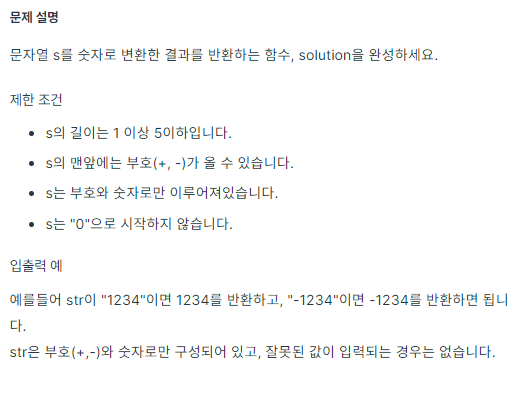 level 1. ๋ฌธ์์ด์ ์ ์๋ก ๋ฐ๊พธ๊ธฐ/ ์๋ฐ