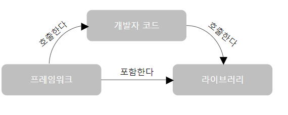 - νλ μμν¬λ κ·Έ μ€μ€λ‘ μ μ΄ νλ¦μ μ£Όλμ±μ κ°λ λ°λ©΄, λΌμ΄λΈλ¬λ¦¬λ κ°λ°μκ° κ°μ§κ³ μλ€.