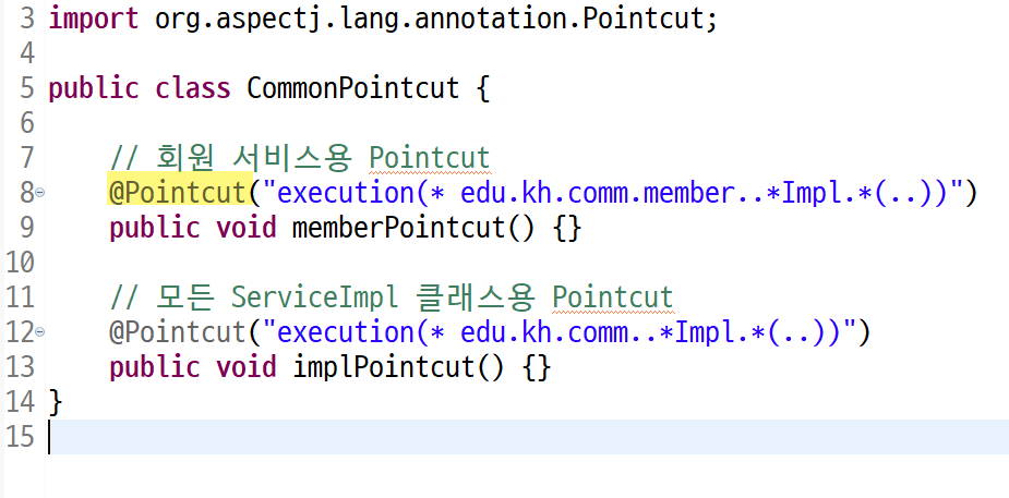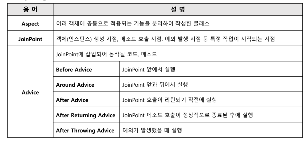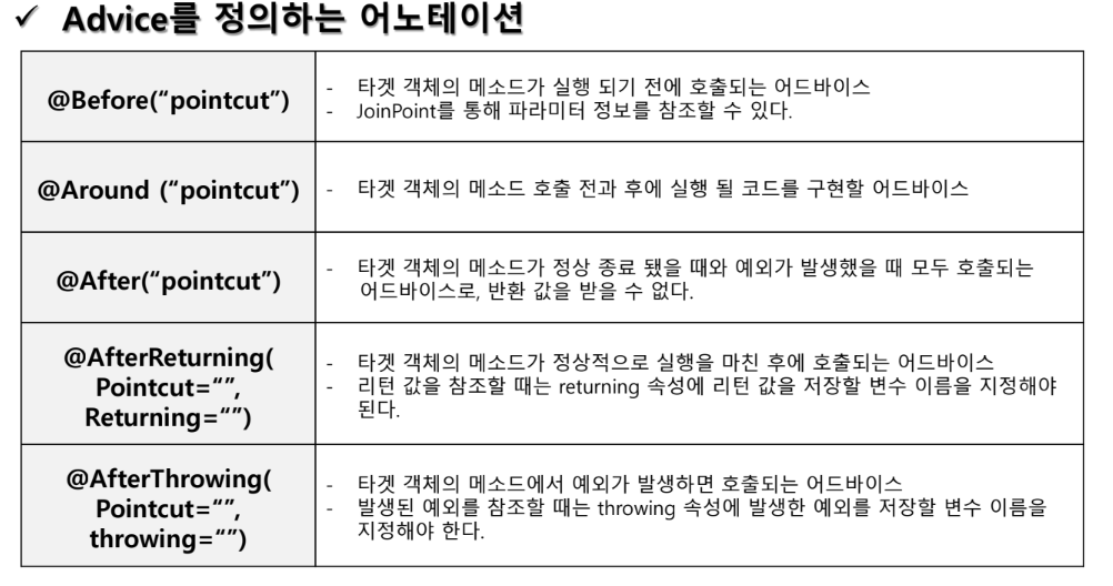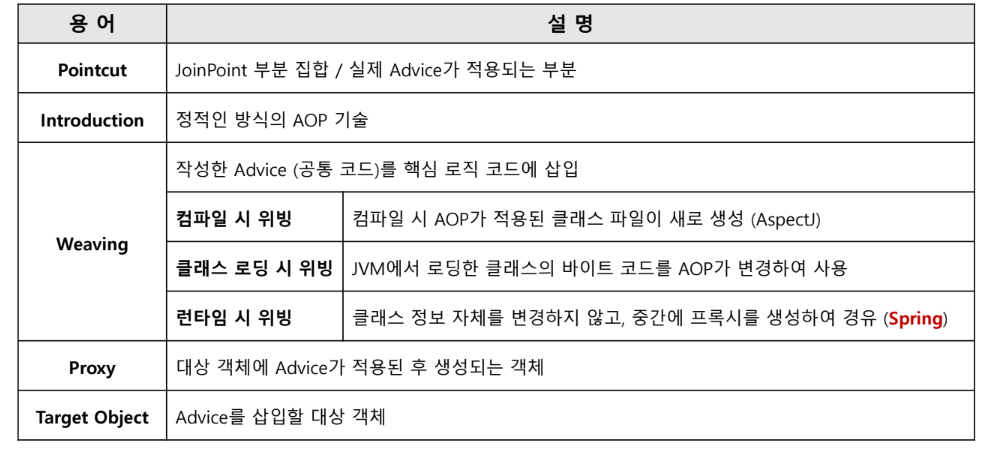 - ์ด ๋, Aspect ํด๋์ค๋ ์ด๋๋ฐ์ด์ค๋ฅผ ๊ตฌํํ๋ ๋ฉ์๋์ ํฌ์ธํธ์ปท์ ํฌํจํ๋ค.
