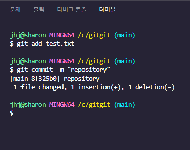 - text.txt 파일에 "This is a repository" 라고 수정해서 commit까지 하기