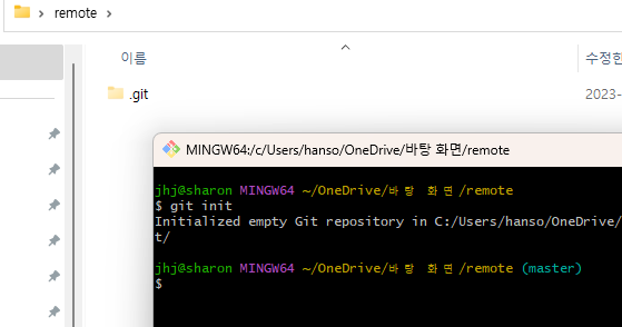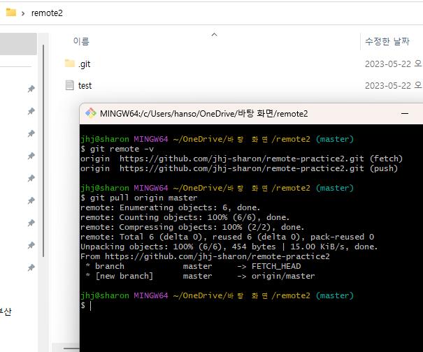 - 위에서 설명한 것처럼 remote add 없이도 원격저장소와 연결된 것을 볼 수 있다.