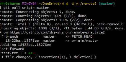 3. 원격저장소 갖고와서 합치기 : $ git pull(origin master)