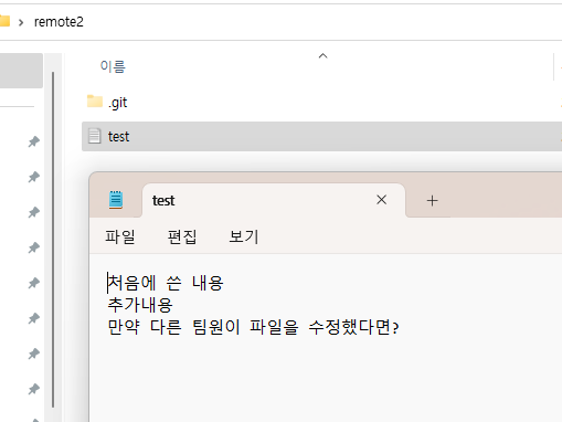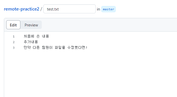 | 다시 한 번 동기화 연습! - 원격저장소 파일 변동 ![]() - push를 통해 내 로컬 저장소 덮어쓰기 ![]() ![]() |