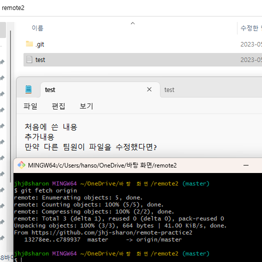 - fetch를 할 경우 내 로컬 파일이 변하지는 않는다.