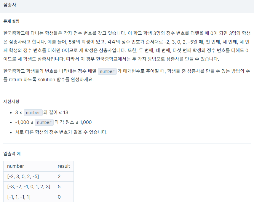 - ์ ์ฒด ๋ฐฐ์ด์์ ์ ํํด์ผํ๋ ์์๋ ์ต์ 3๊ฐ ์ด๋ฏ๋ก ์ฒซ๋ฒ์งธ for๋ฌธ์ i๋ฅผ ํฌํจํด์ ์ ์ฒด๋ฐฐ์ด์์ ์ต์ -2๊ฐ๋ฅผ ๋นผ๋์์ผํ๋ค. ๋๋ฒ์งธ๋ ๋ง์ฐฌ๊ฐ์ง์ด๋ค.