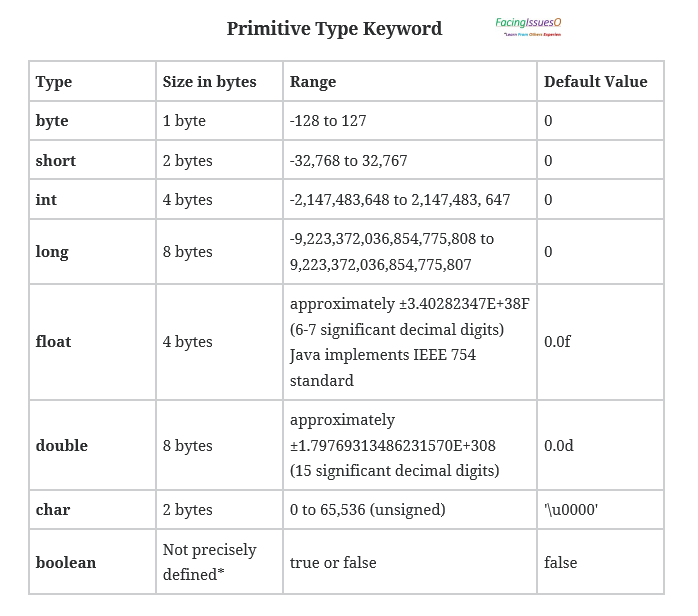 - 원시 타입 : 정수형(byte, short, int, long), 실수형(float, double), 문자열(char), 논리형(boolean)