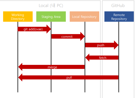 - 'git push' 이전에 연결된 원격 레파지토리에 반영시킨다.