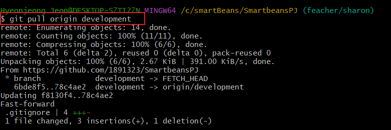 | development에 올려진 내용을 pull하는 방법