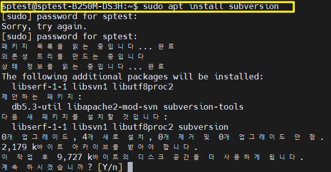 1. ssh로 연결한 서버컴퓨터에 subversion 설치하기