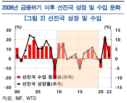 1) 선진국의 저성장으로 인한 수입수요 감소