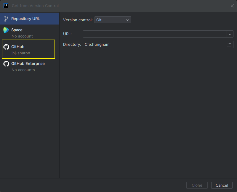 2. 가져올 Git repository의 url 복사해서 붙여넣고 디렉토리 경로 설정해주기
