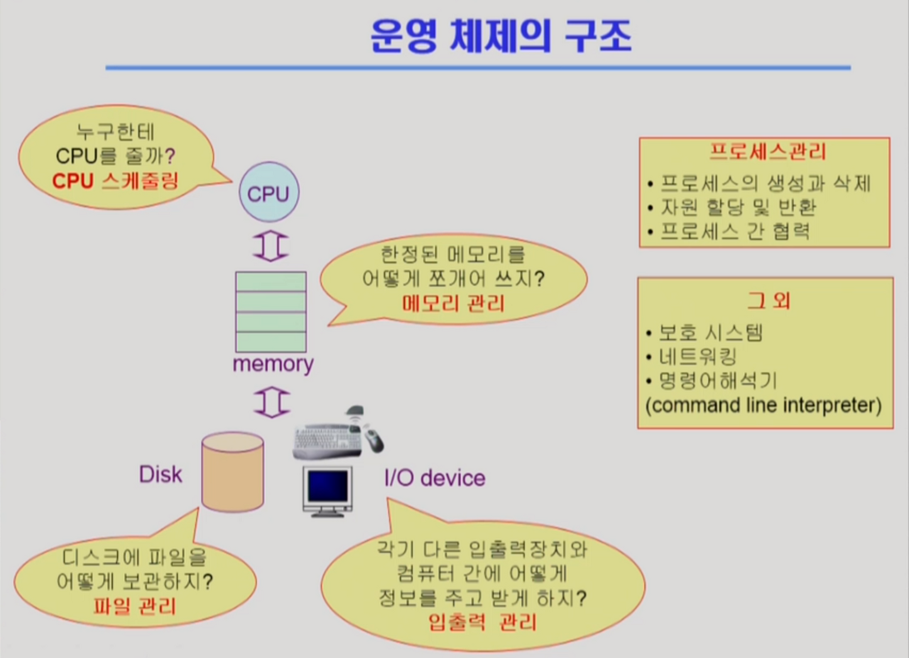 - 컴퓨터 시스템의 자원을 효율적으로 관리해준다. -> 자원관리자