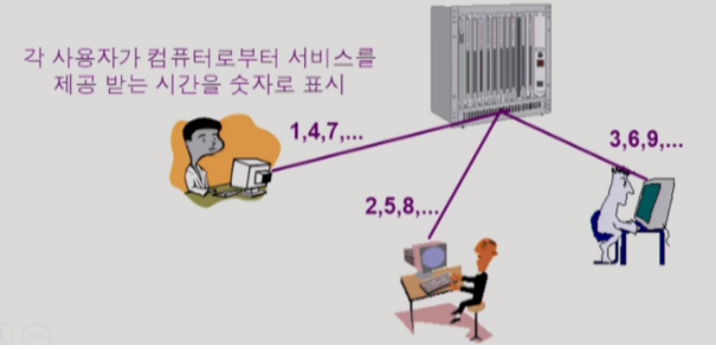- 여러 작업을 수행할 때 컴퓨터 처리 능력을 일정한 시간 단위로 분할하여 사용