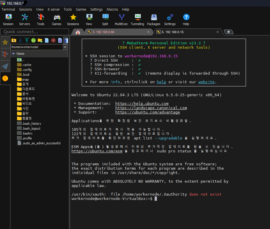 ๊ฐ ๊ฐ์๋จธ์ ์ ์คํํด๋๊ณ ๋ช ๋ น์ด ์ ๋ ฅ ๋ฐ ๊ด๋ฆฌ๋ฅผ ๋ชจ๋ MobaXterm์์ ํ๋ ๊ฒ์ด๋ค.