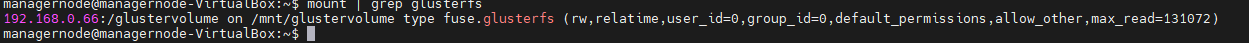 sudo mount -t glusterfs 192.168.0.66:/glustervolume /mnt/glustervolume