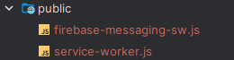 PWA 구현시 create-app-react로 생성하지않아 아래와 같은 폴더 구조를 가지고 있지 않았다. 그래서 루트에 public 폴더를 생성하고 하위에 서비스 워커 설정을 위한 js를 추가했다.
