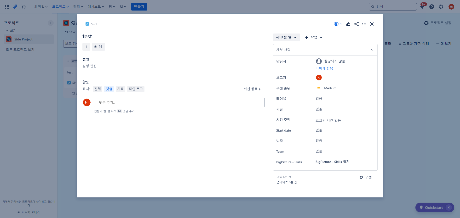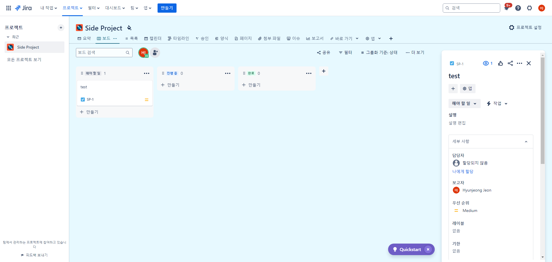 [jira] 보드/칸반 사이드바, 팝업 모달 설정하기 본문