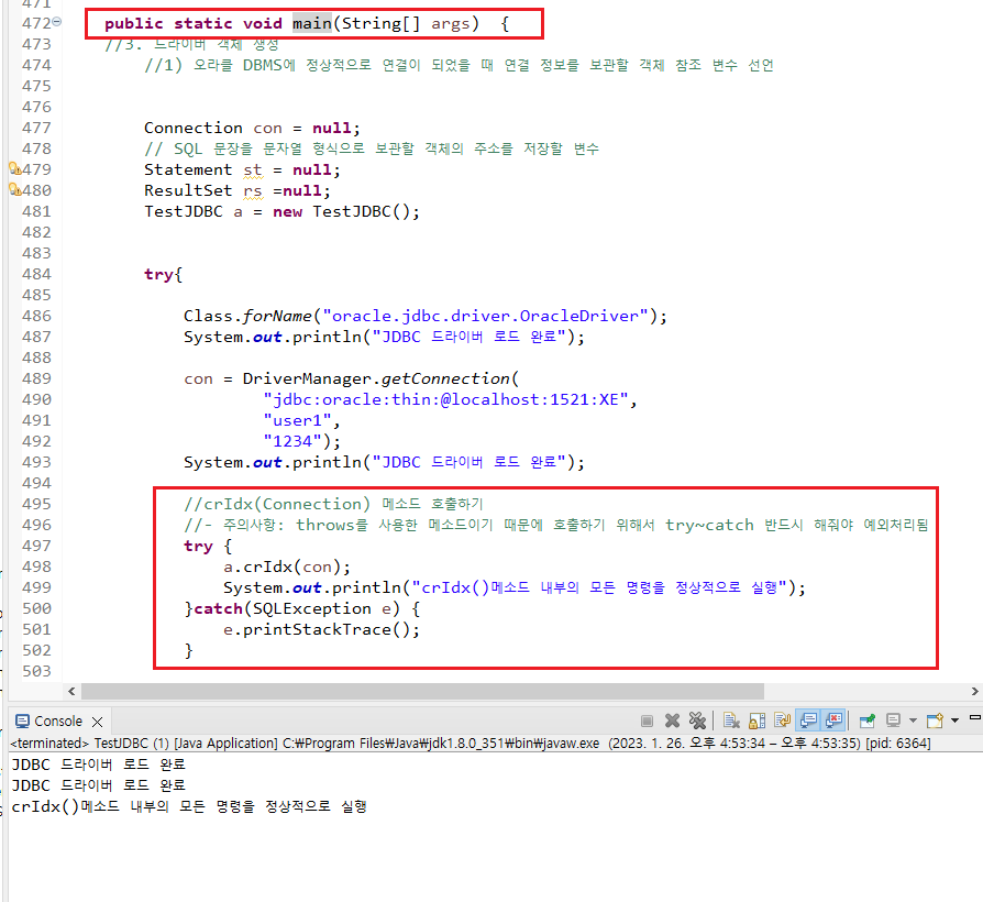 2. ์์ ๋ฉ์๋๋ฅผ ํธ์ถํ main()๋ฉ์๋์์ ์์ธ์ฒ๋ฆฌ