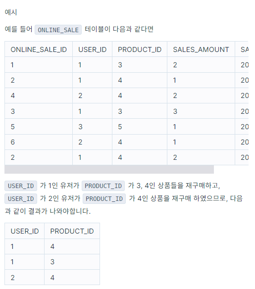 ํ๋ก๊ทธ๋๋จธ์ค>SELECT>์ฌ๊ตฌ๋งค๊ฐ ์ผ์ด๋ ์ํ๊ณผ ํ์ ๋ฆฌ์คํธ ๊ตฌํ๊ธฐ