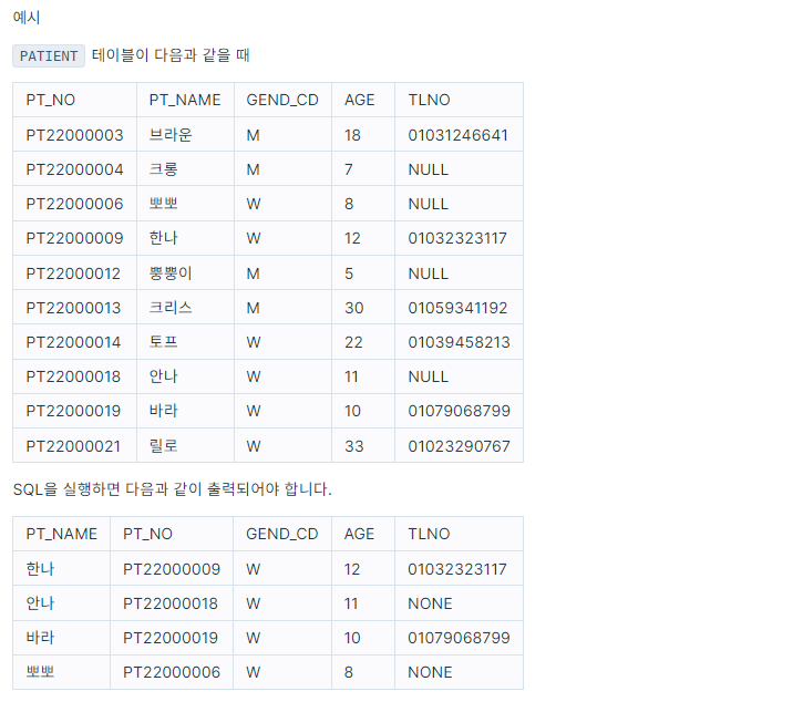 | ํ๋ก๊ทธ๋๋จธ์ค>SELECT>์ฌ๊ตฌ๋งค๊ฐ ์ผ์ด๋ ์ํ๊ณผ ํ์ ๋ฆฌ์คํธ ๊ตฌํ๊ธฐ (0) | 2023.02.04 |
