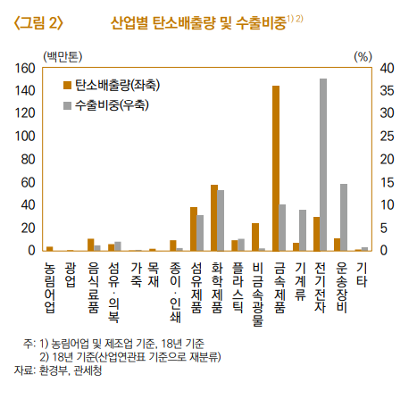 (출처: 한국은행 [2021.7 논고] 주요국 기후변화 대응정책이 우리 수출에 미치는 영향 - 탄소국경세를 중심으로.pdf )